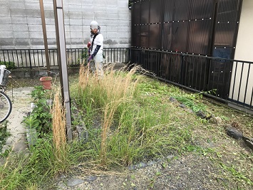 八幡市で空き家の剪定・草刈をしました。1年1回定期的に作業させていただいております。お忙しくてそれどころではない方にも、こちらから連絡して空き家の剪定、草刈り作業をさせていただきます。