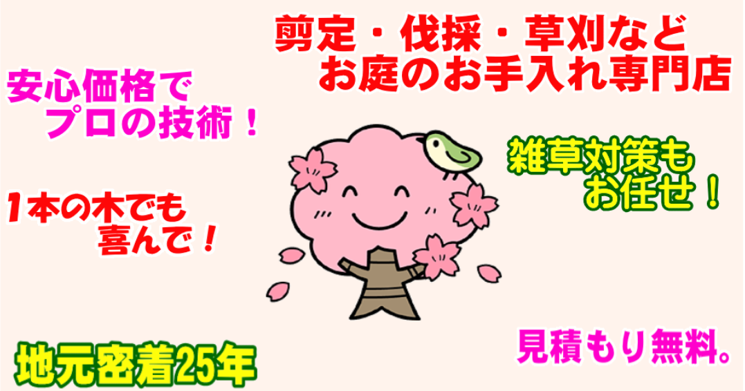 こんにちは、お庭サービスです。お庭の剪定・草刈・伐採などの造園・植木屋サービスを京田辺・八幡市などで京都府南部で展開している造園屋・植木屋です。安い、早い、親切をモットーに、お客様に満足していただけるように日々全力で取り組んでいます。