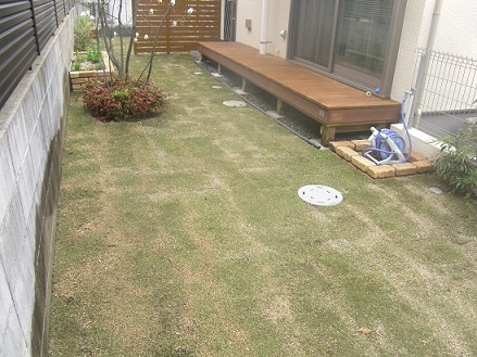 また、既存の芝生がうまく育たず、 「部分的に枯れてしまった」「全体的に元気がないので張り替えたい」 といったお悩みもよくあります。 原因を見極めたうえで、必要に応じて土壌改良や全面張替えをご提案することも可能です。