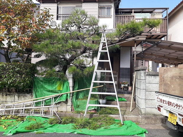 当店は、八幡市を中心に庭木のお手入れを行う植木屋です。「庭木が伸びて困っている」「高い木を安全に切ってほしい」「草が伸びて手に負えない」など、お庭のお悩みは何でもご相談ください。